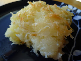 This recipe for bibingka is for the "sticky kind" like I had made on that day long ago. My mom recently made this recipe over Christmas week and we enjoyed it so much that I thought I'd give it a try. She made some modifications to the original recipe so I'm including those modifications here as hers turned out better than I remember mine being. If you're avoiding wheat or gluten, this is a good recipe to make since it uses rice flour, not wheat flour. Some versions of this bibingka are topped with both coconut and cheese. I don't like cheese on baked goods so I've left it out. If you want to try it with cheese, add a few ounces of sharp grated cheddar cheese along with the coconut. If you're like me and love coconut, don't skimp on it when you top the batter with it. It not only adds to the appearance when the bibingka is baked, becoming a nice golden brown top, but it also adds to the flavor and texture.