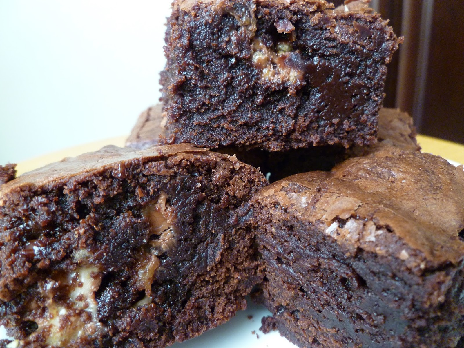This was no exception. I list the full recipe below but I cut the recipe in half and baked these in a 9" baking pan. They still baked up reasonably thick but were still a manageable bite. Cut them into small pieces though as they are rich. If brownies aren't rich and decadent, there's almost no point to making them and certainly to eating them.