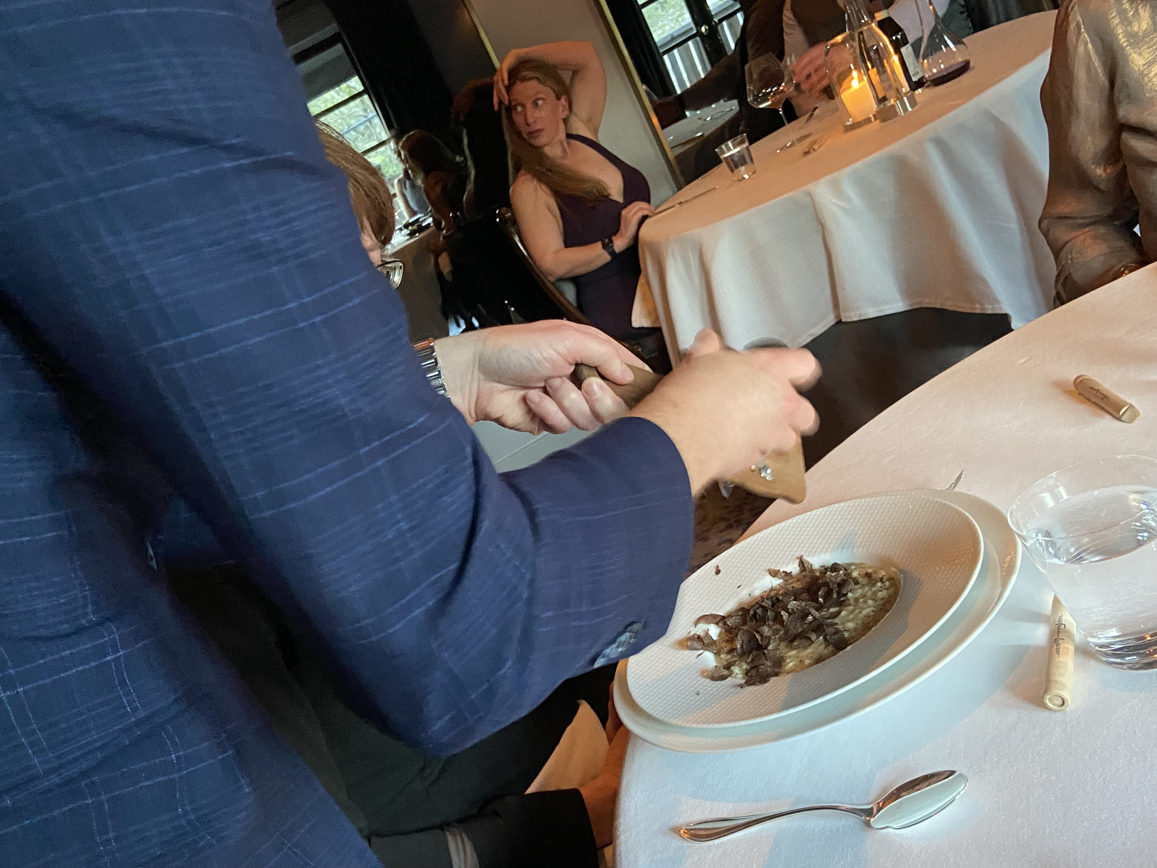 Even beyond what the staff could control, the rest of the experience matched it. We were in a small room (intimate rather than tiny) with a few other tables. Everyone was comfortable, no one was particularly loud but no one was hushed, pretentious or reverent either. Everyone was having a good time. The table next to us had someone celebrating their 40th birthday and their friends cheered. The French Laundry staff brought out something with a sparkler on it for the birthday celebrant. The atmosphere in the room was relaxed and enjoyable.